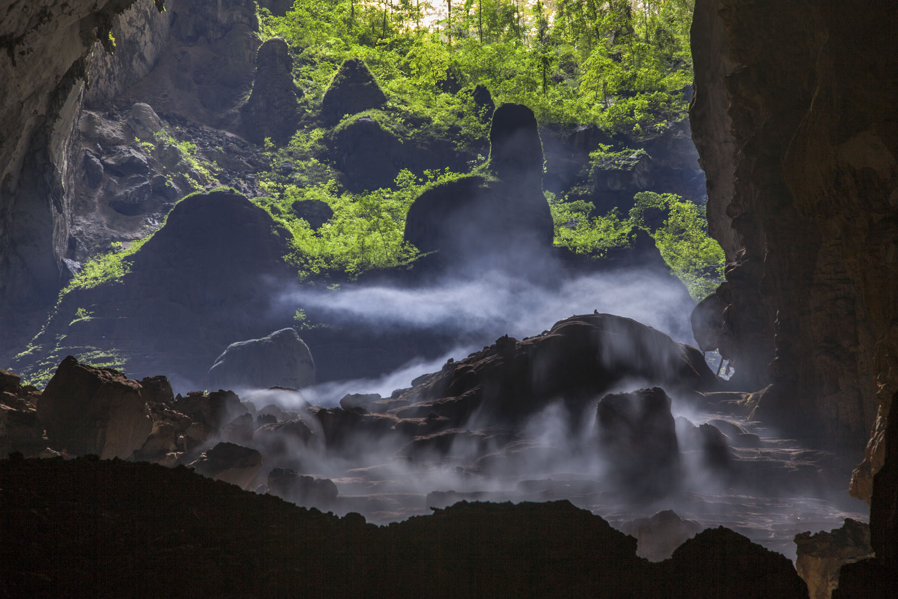 Mây lơ lửng trên những khối thạch nhũ gần khu cắm trại 2 trong Hang Sơn Đoòng (Oxalis Adventure)