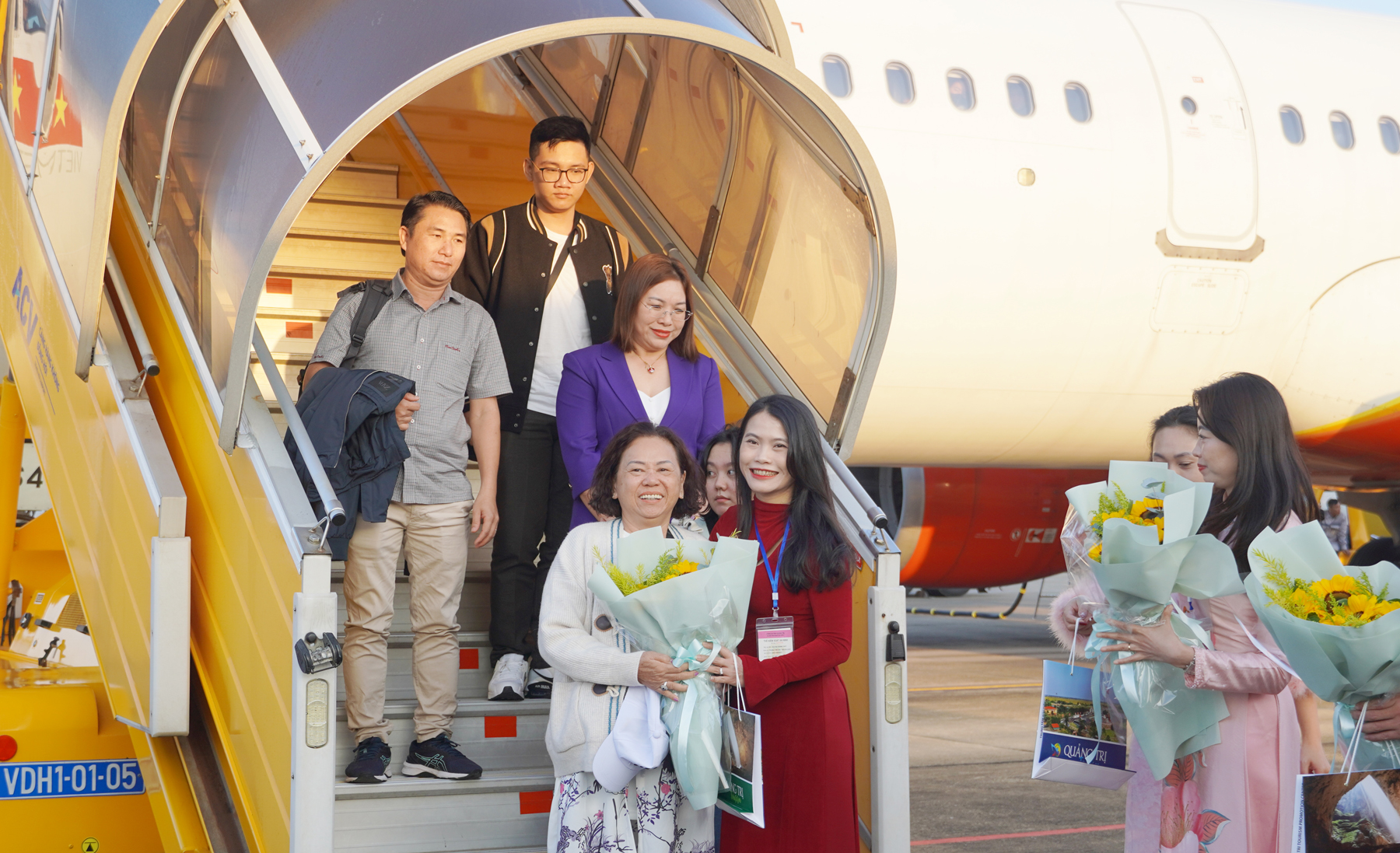 Đại diện lãnh đạo Sở Văn hóa - Thể thao và Du lịch, Trung tâm Xúc tiến du lịch, Hiệp hội Du lịch tỉnh, Phòng Quản lý xuất nhập cảnh (Công an tỉnh), Cảng hàng không Đồng Hới, Cảng vụ Hàng không miền Bắc tại Đồng Hới và Vietjet Air tại Quảng Trị đã tặng hoa, chúc mừng các hành khách cùng phi hành đoàn trên chuyến bay đầu năm mới.