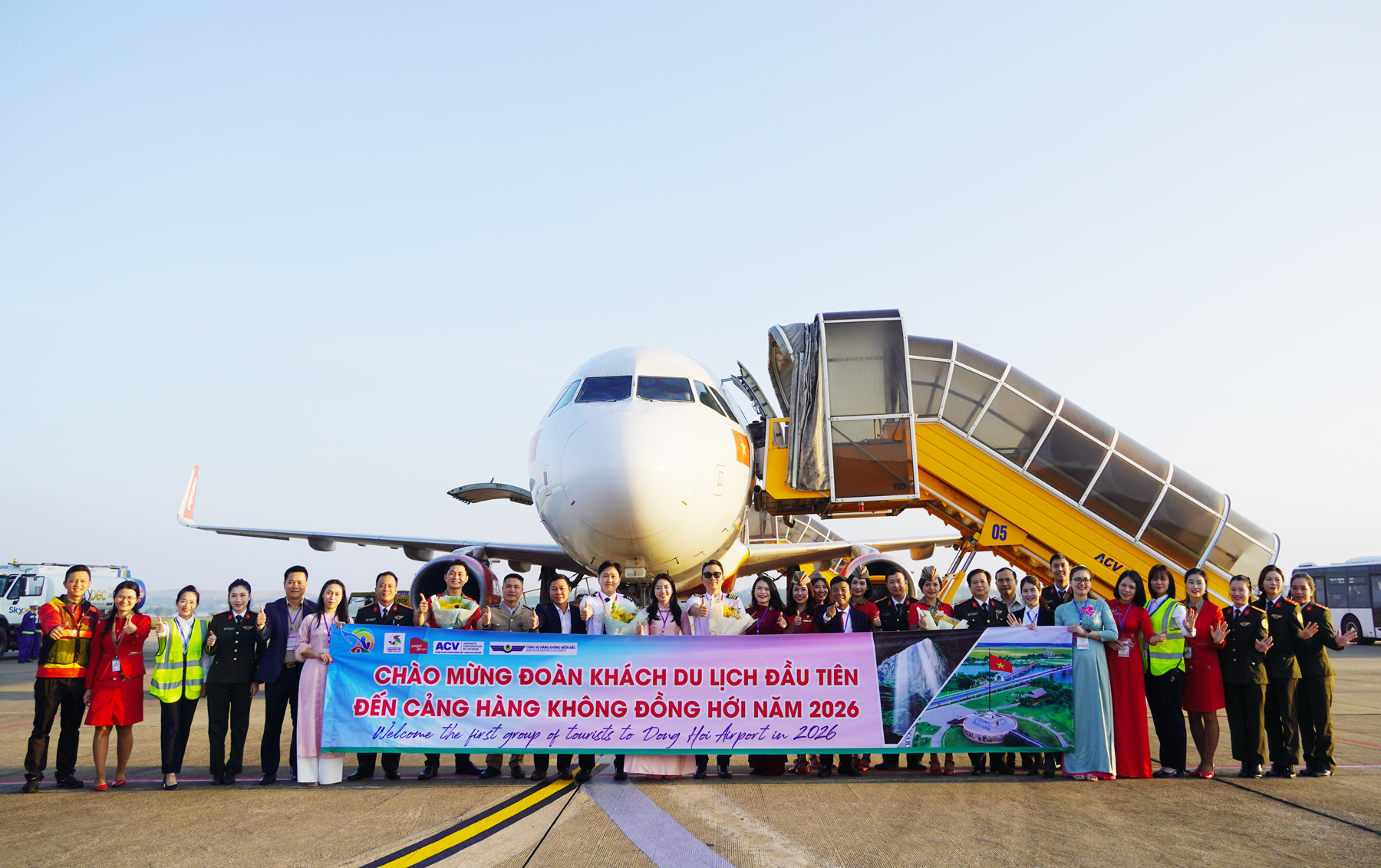 Sáng 1/1/2026, Sở Văn hóa - Thể thao và Du lịch phối hợp với các đơn vị liên quan tổ chức đón đoàn khách du lịch đầu tiên đến Quảng Trị bằng đường hàng không tại Cảng hàng không Đồng Hới.
