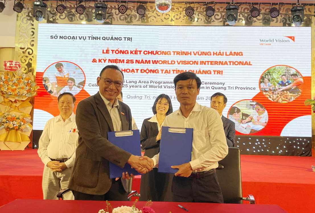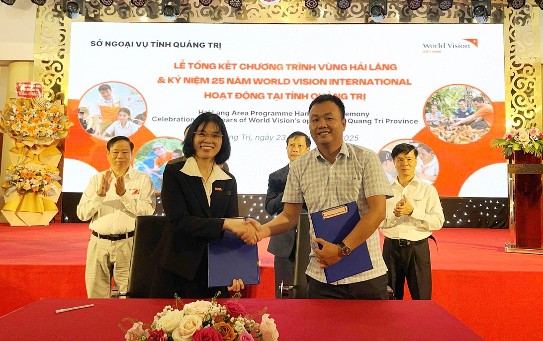 Ngày 23/9/2025, tại phường Đông Hà, Sở Ngoại vụ phối hợp với tổ chức Tầm nhìn Thế giới (WVI) tổ chức lễ tổng kết hoạt động Chương trình vùng Hải Lăng và kỷ niệm 25 năm tổ chức Tầm nhìn Thế giới hoạt động tại tỉnh Quảng Trị.