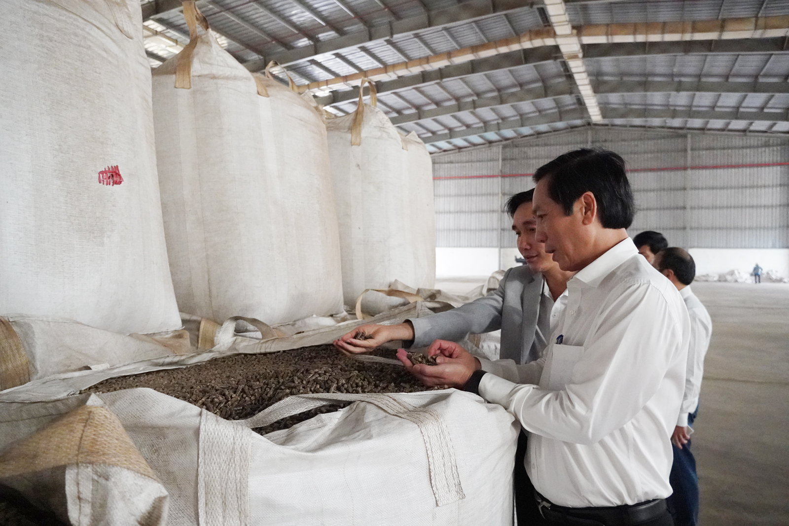 Dịp này, đoàn công tác của UBND tỉnh cũng đã đến thăm, kiểm tra tại Công ty Cổ phần Năng lượng sinh học Vĩnh Ninh, xã Quảng Ninh. Đây là nhà máy chuyên sản xuất viên nén năng lượng xuất khẩu với sản lượng trên 70.000 tấn/năm.
