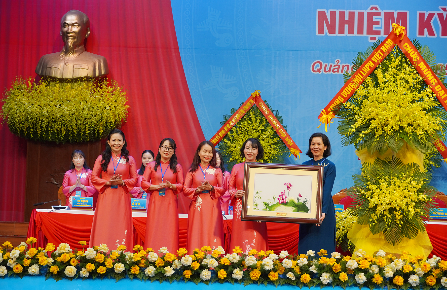 Phó Chủ tịch Trung ương Hội LHPN Việt Nam Nguyễn Thị Minh Hương tặng hoa chúc mừng Đại hội