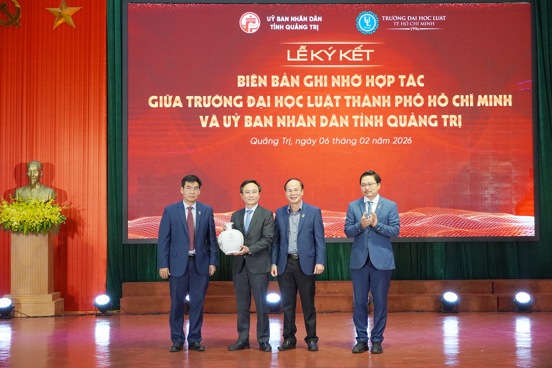Tại buổi lễ cũng đã diễn ra lễ ký bàn giao giữa Bộ Tư pháp và Bộ Giáo dục và Đào tạo về nhân sự, tài chính và cơ sở vật chất. Ký kết thỏa thuận hợp tác giữa UBND tỉnh Quảng Trị và Trường Đại học Luật Thành phố Hồ Chí Minh nhằm phối hợp đào tạo, bồi dưỡng nguồn nhân lực pháp luật phục vụ phát triển kinh tế - xã hội địa phương.