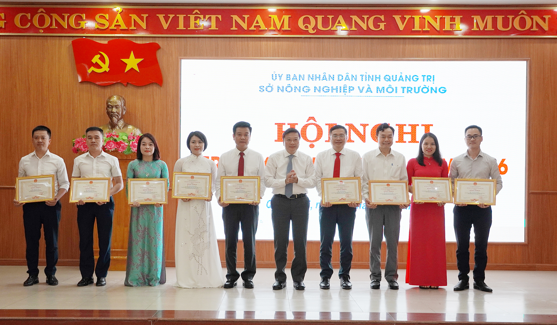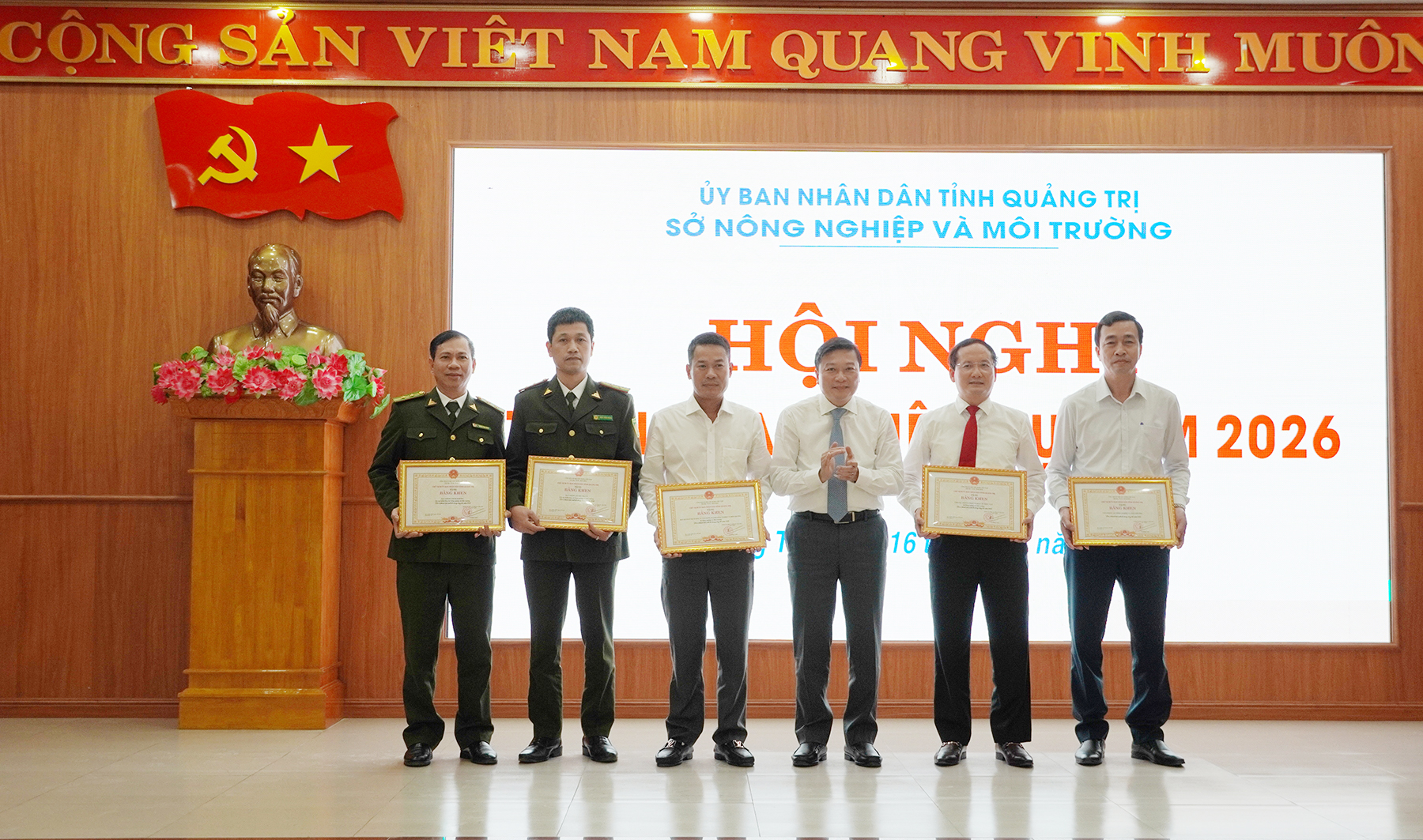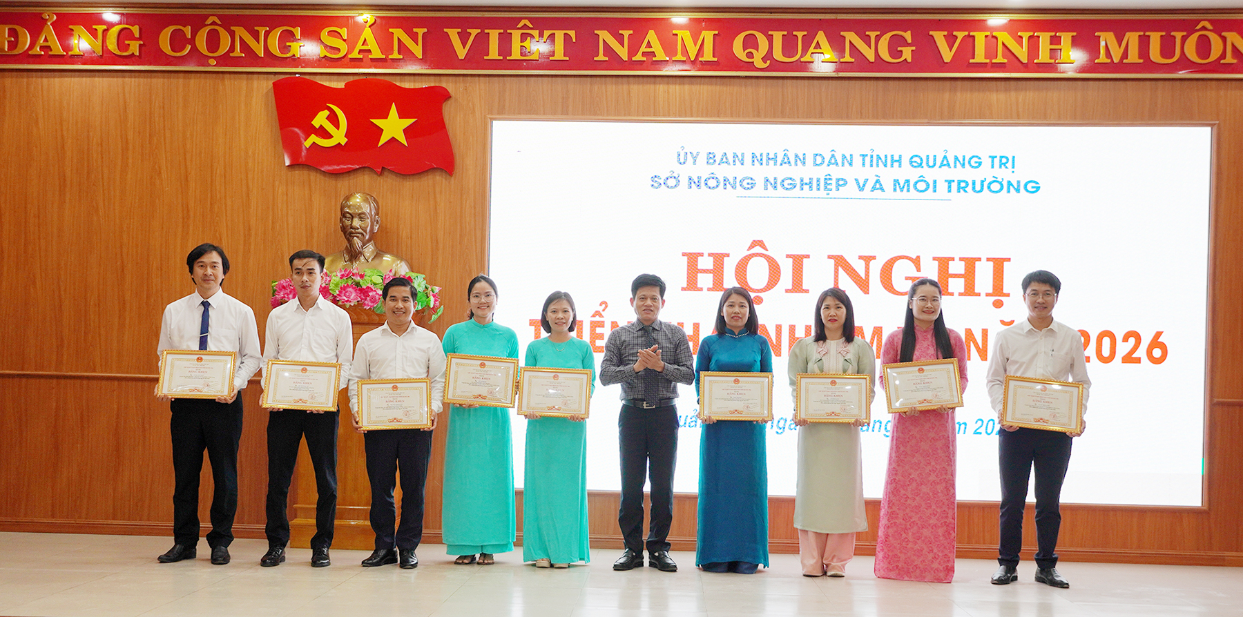 Nhân dịp này, Chủ tịch UBND tỉnh đã tặng thưởng Bằng khen cho 5 tập thể và 18 cá nhân thuộc ngành Nông nghiệp và Môi trường có nhiều thành tích xuất sắc trong công tác năm 2025.