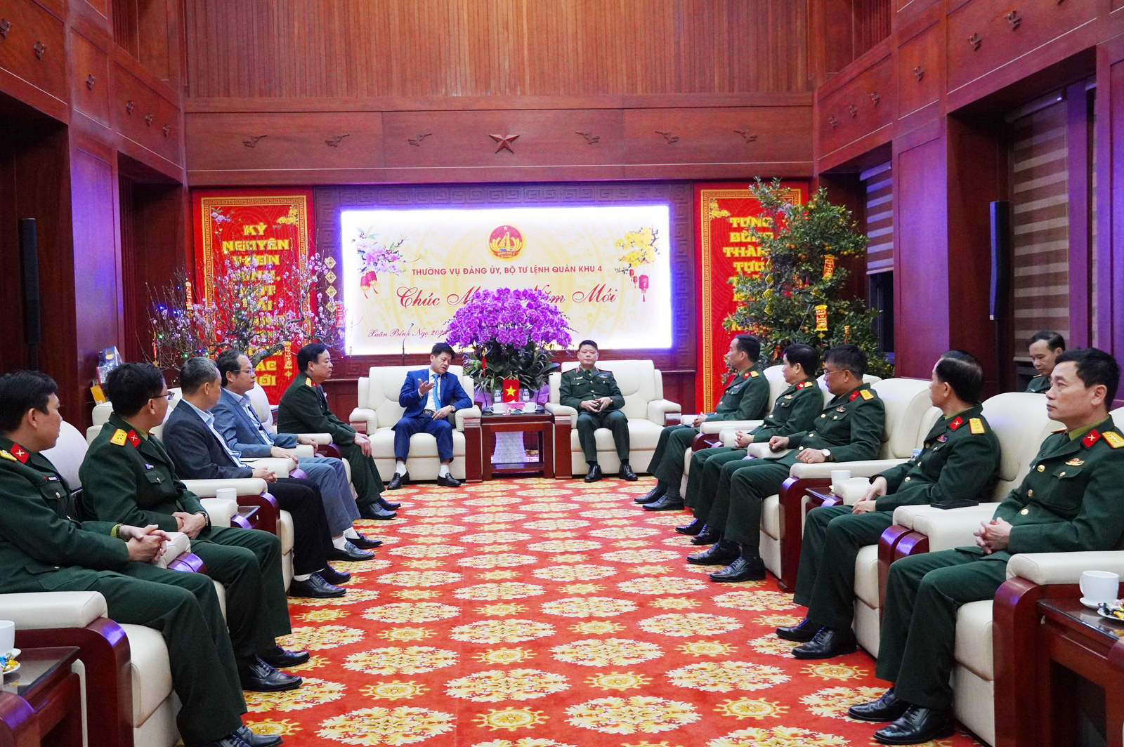 Nhân dịp đón tết Nguyên đán Bính Ngọ năm 2026, Phó Chủ tịch UBND tỉnh chúc lãnh đạo Bộ Tư lệnh và toàn thể lực lượng vũ trang Quân khu 4 đón Xuân mới thật nhiều sức khỏe, hạnh phúc và thành công trên mọi phương diện.