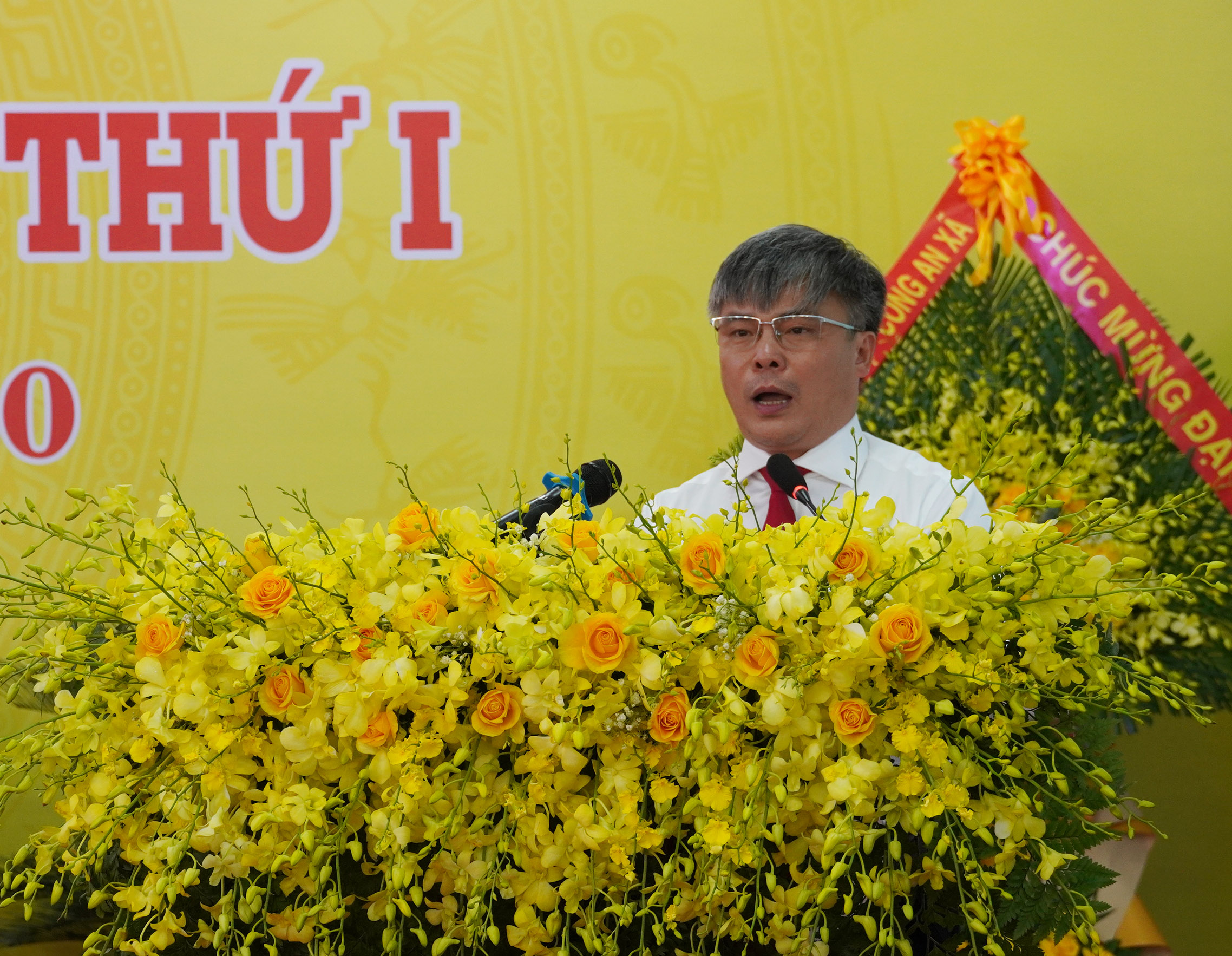 Phó Chủ tịch UBND tỉnh Hoàng Xuân Tân tặng hoa chúc mừng Đại hội
