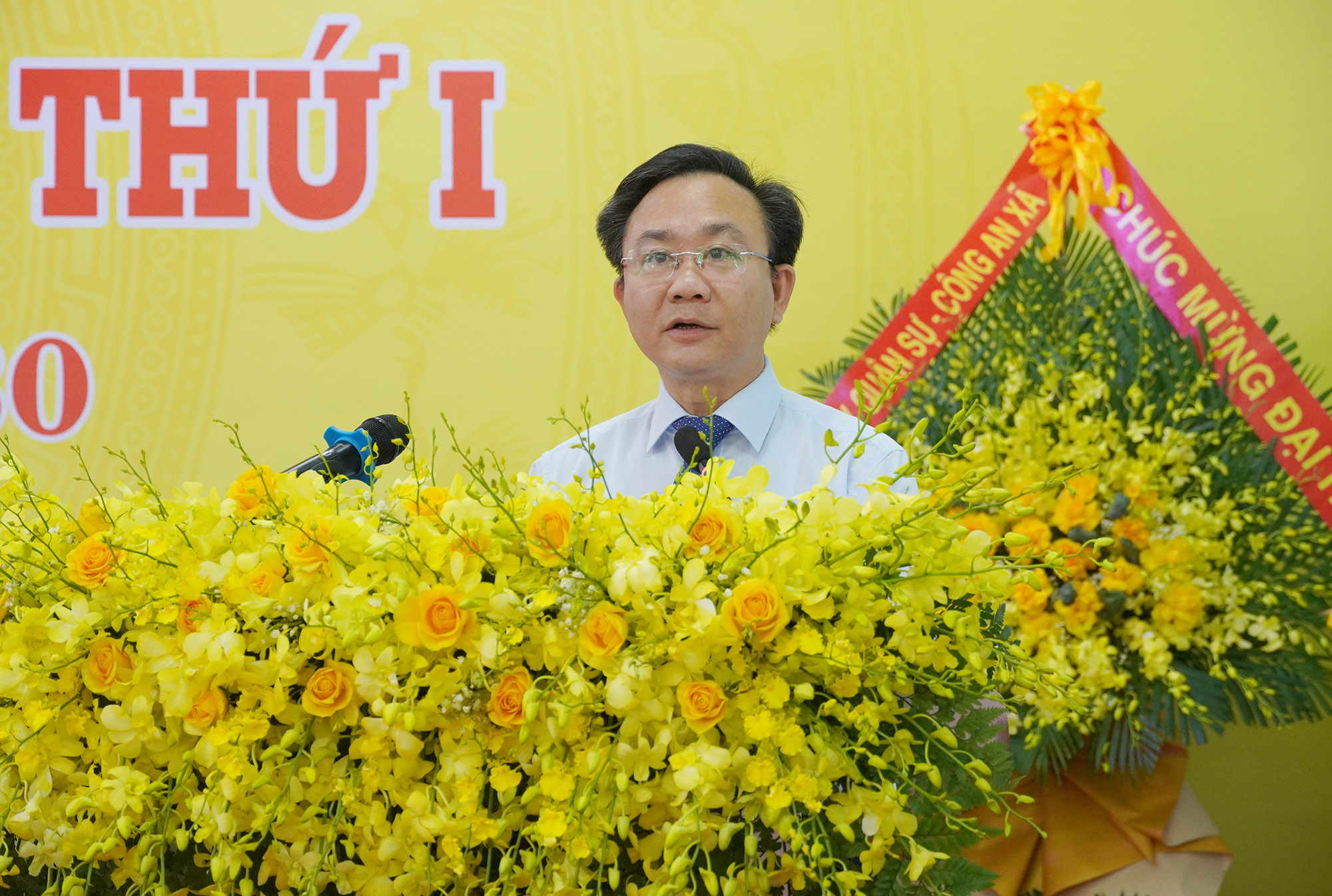 Phó Chủ tịch UBND tỉnh Hoàng Xuân Tân tặng hoa chúc mừng Ban Chấp hành Đảng bộ xã Nam Trạch nhiệm kỳ 2025 - 2030