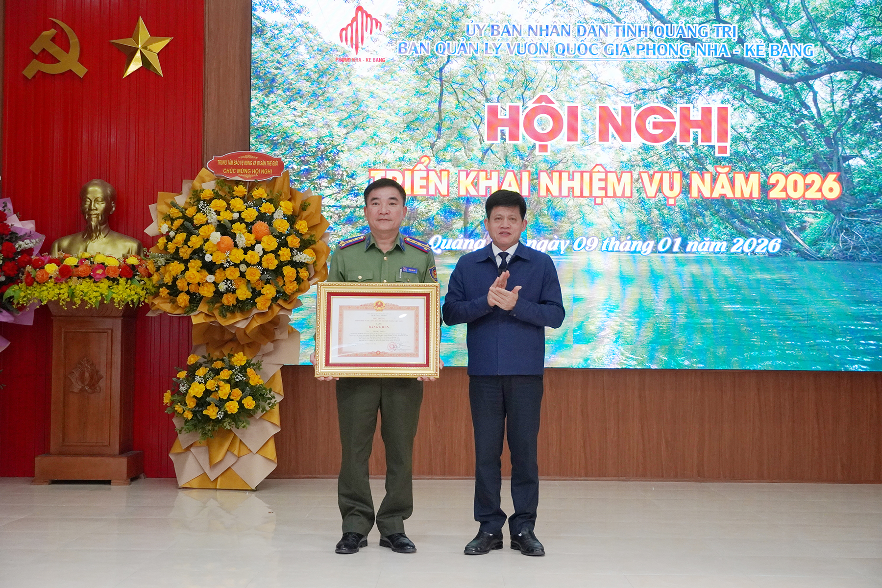 Nhân dịp này, Thủ tướng Chính phủ đã tặng thưởng Bằng khen cho 1 cá nhân; Chủ tịch UBND tỉnh đã tặng thưởng Danh hiệu Tập thể Lao động xuất sắc cho 05 tập thể; Bằng khen cho 02 cá nhân thuộc Ban Quản lý VQG PNKB đã có thành tích xuất sắc trong công tác năm 2025.