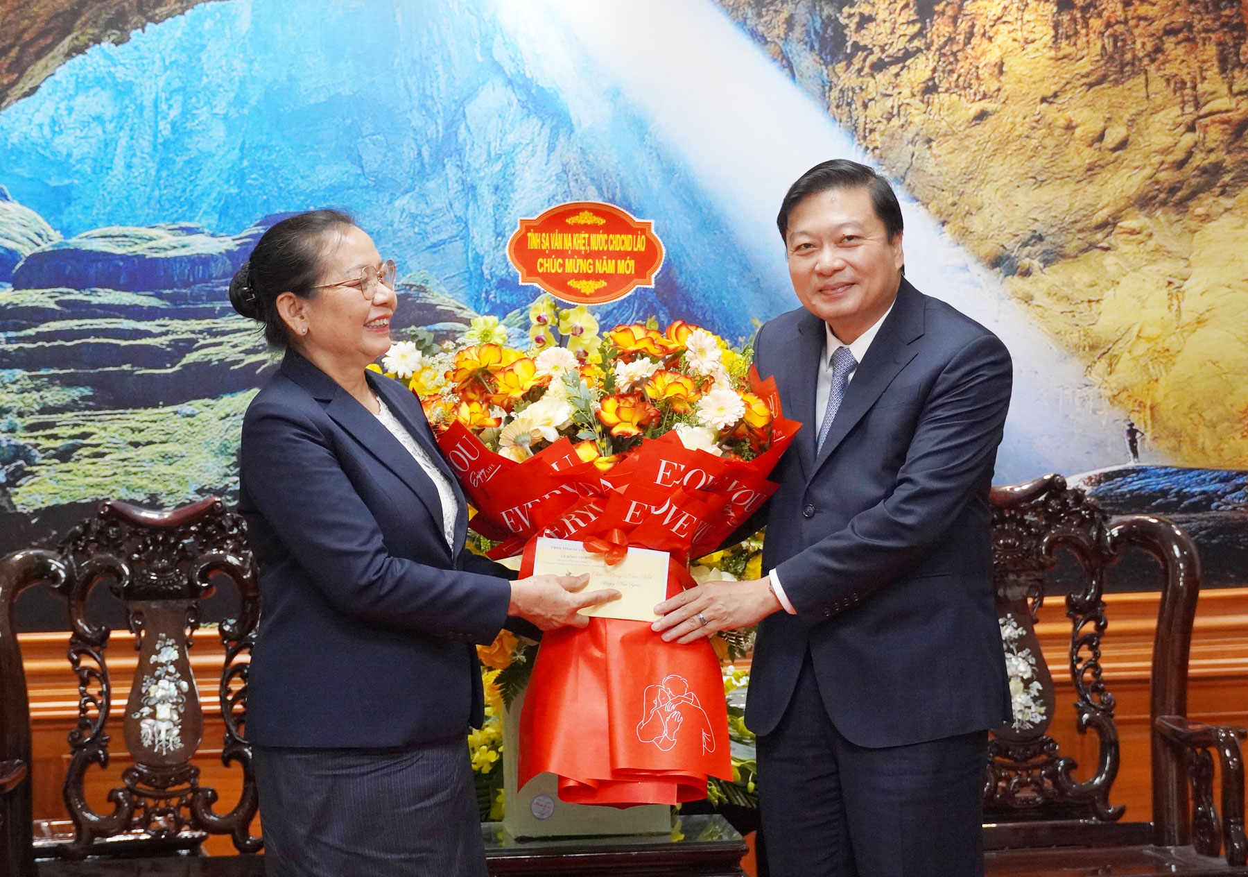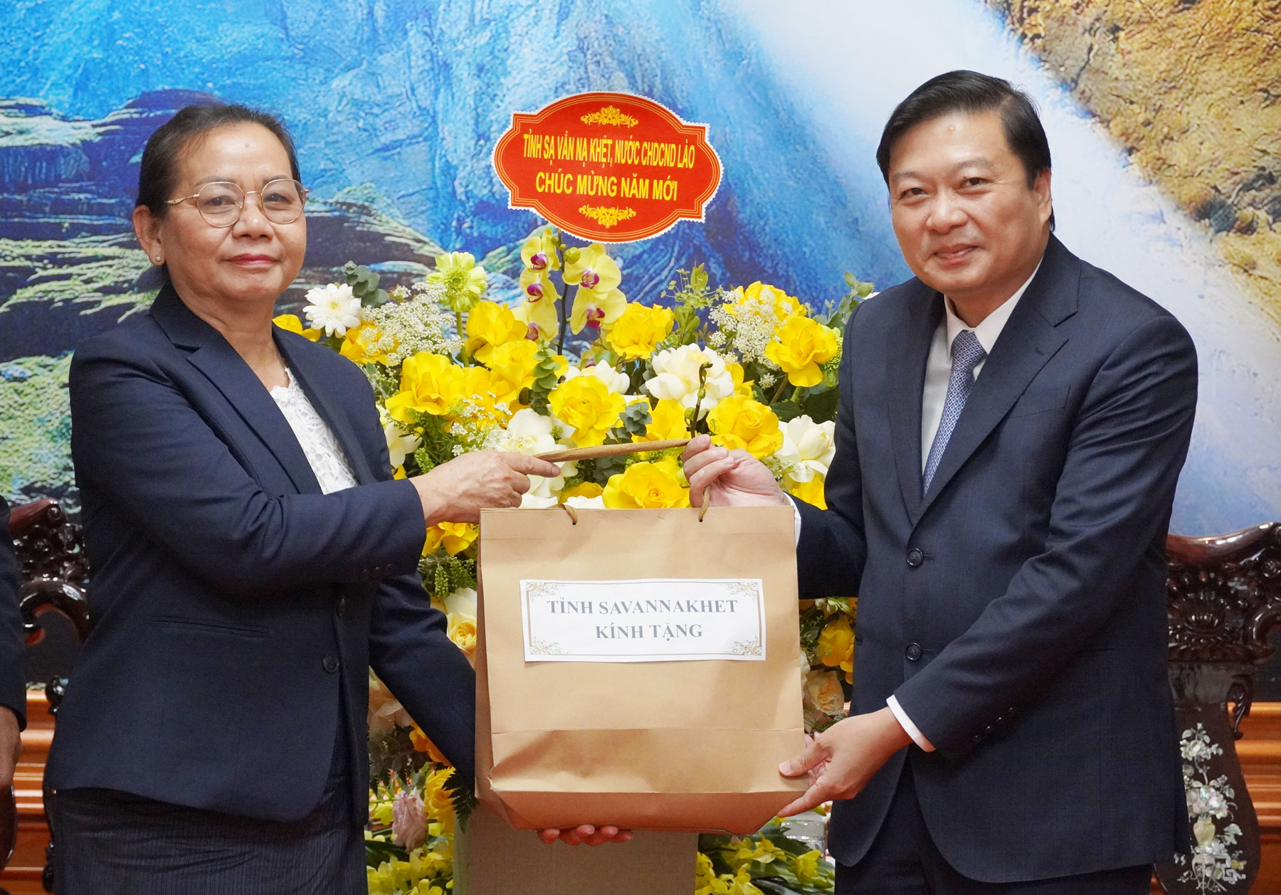 Tại buổi tiếp, đồng chí Đào-von Xay-sụ-liên thông tin những kết quả nổi bật của tỉnh Savannakhet năm 2025 với tăng trưởng kinh tế tích cực, thu ngân sách cải thiện, sản xuất nông nghiệp và lĩnh vực năng lượng phát triển mạnh; đồng thời chia sẻ định hướng hợp tác sâu rộng hơn với Quảng Trị trong năm 2026. Nhân dịp năm mới, đồng chí Đào-von Xay-sụ-liên gửi lời chúc tốt đẹp đến Đảng bộ, chính quyền và Nhân dân tỉnh Quảng Trị, nhấn mạnh sự tương đồng văn hóa và tinh thần “chung vui, chung Tết” giữa hai dân tộc.