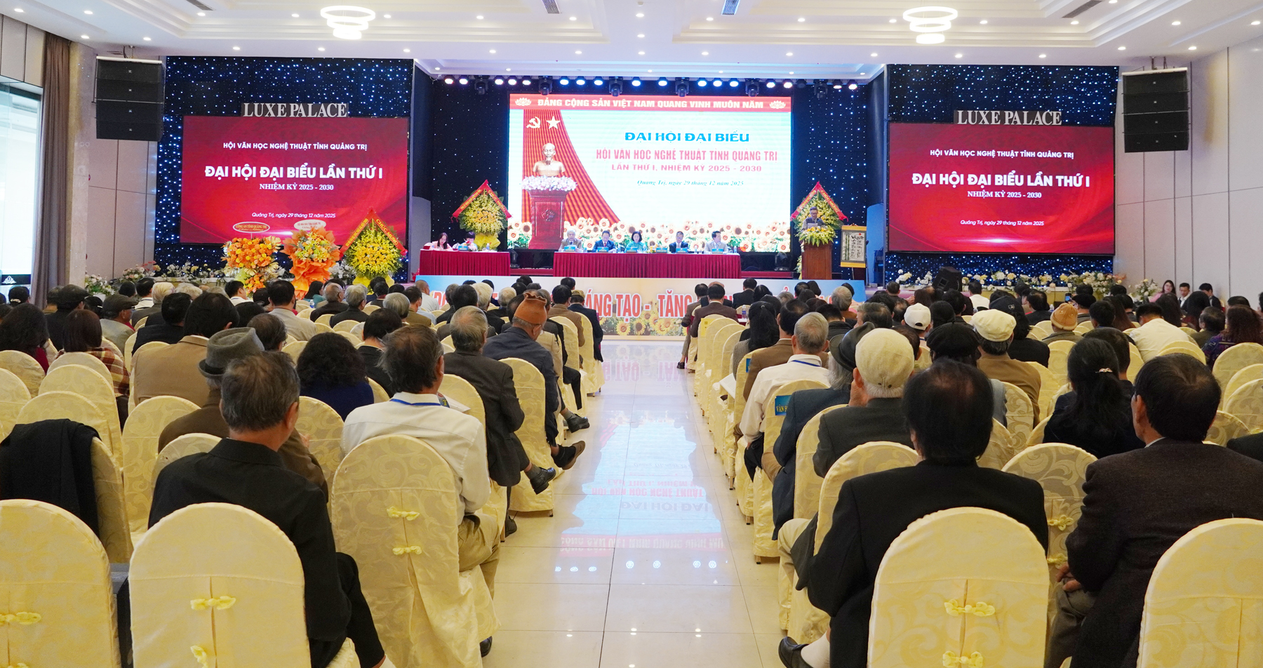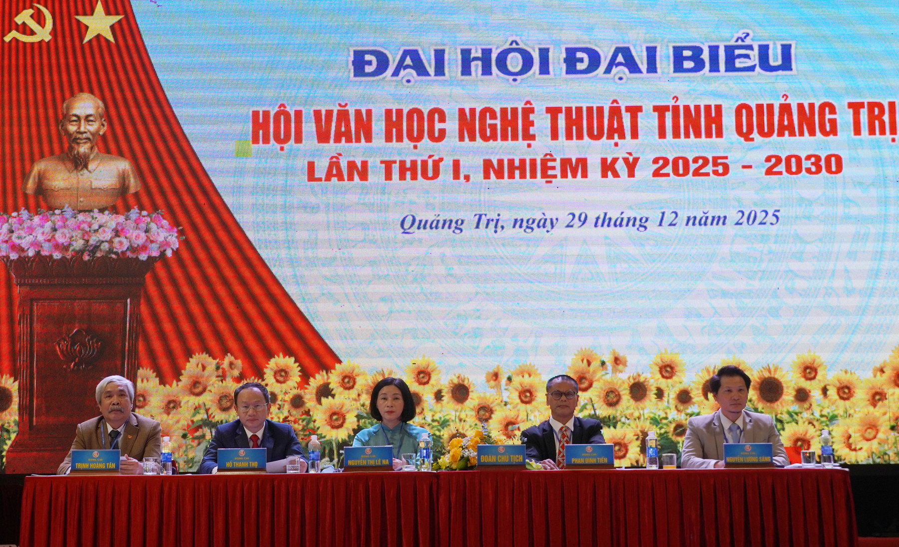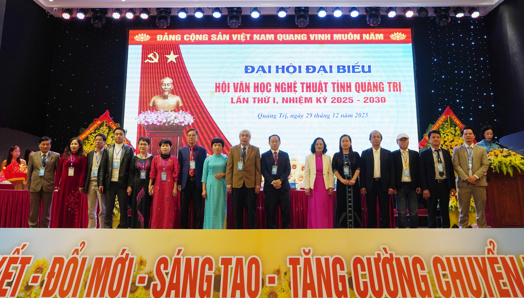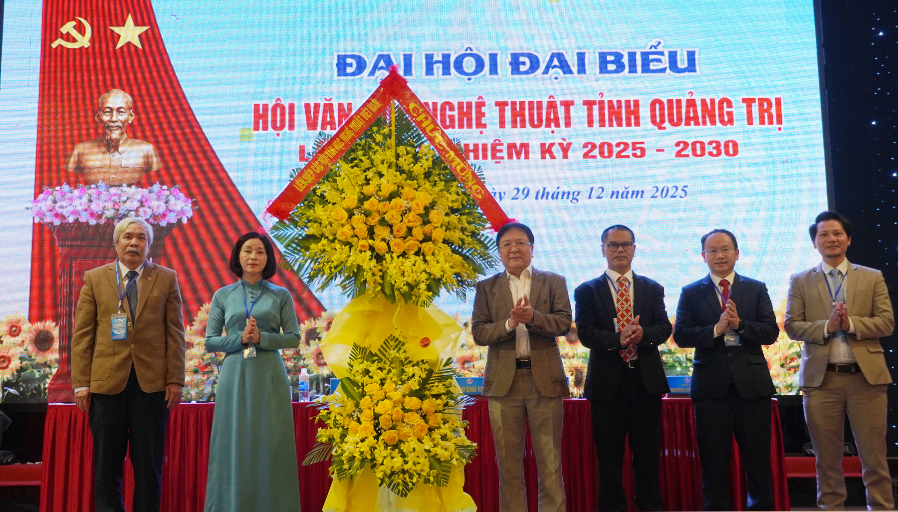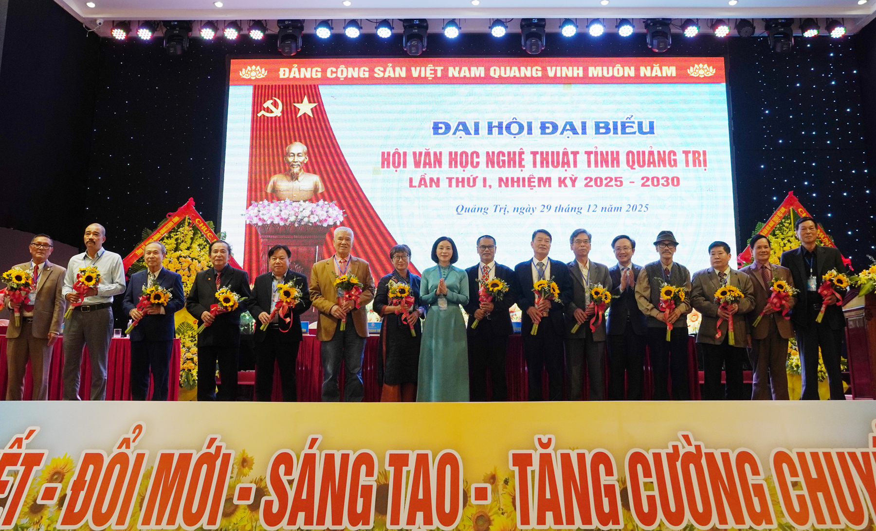 Các đồng chí lãnh đạo tỉnh tặng hoa chúc mừng Ban Chấp hành Hội VHNT tỉnh Quảng Trị lần thứ I, nhiệm kỳ 2025 - 2030