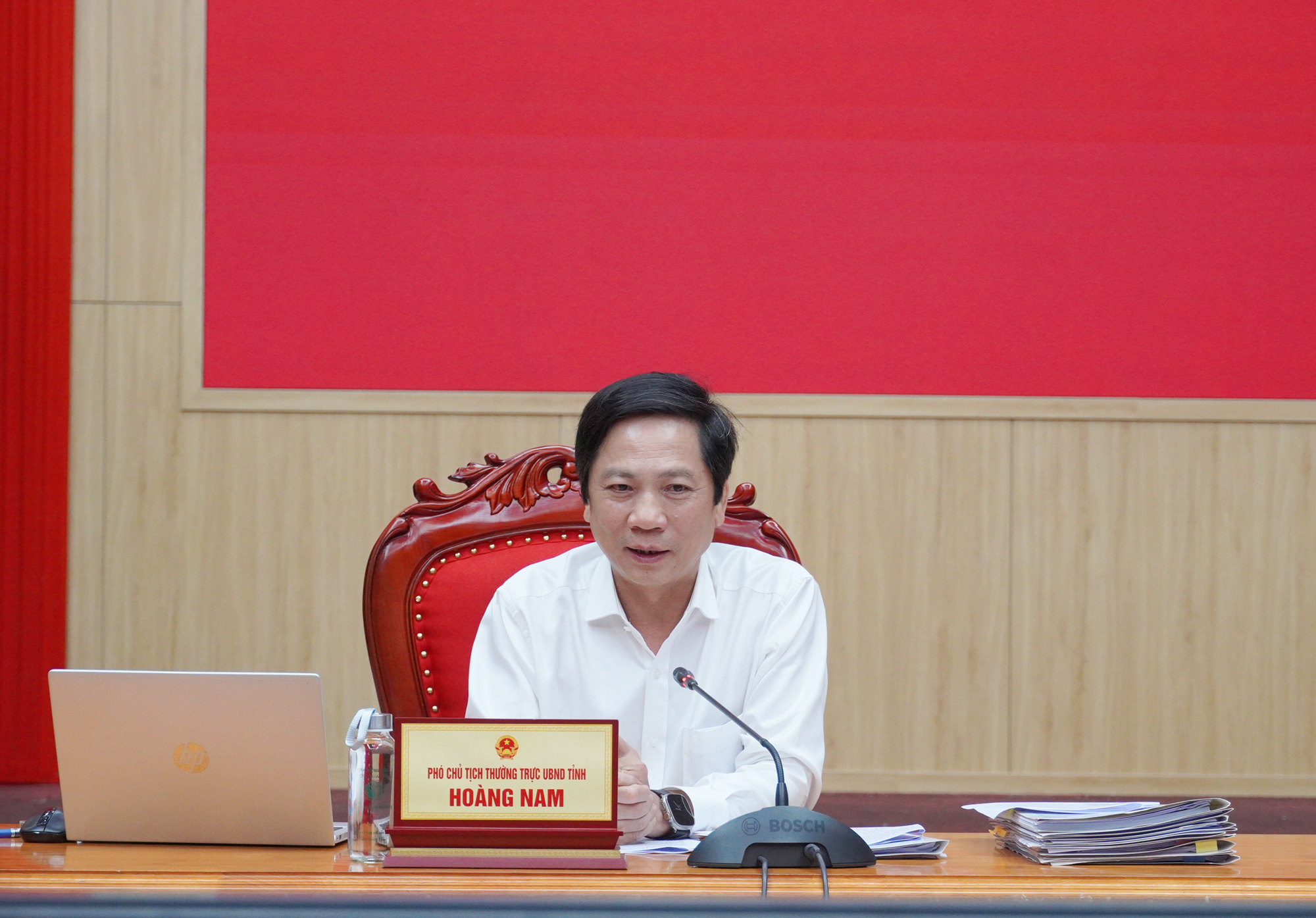 tịch Thường trực UBND tỉnh Hoàng Nam phát biểu tại cuộc họp