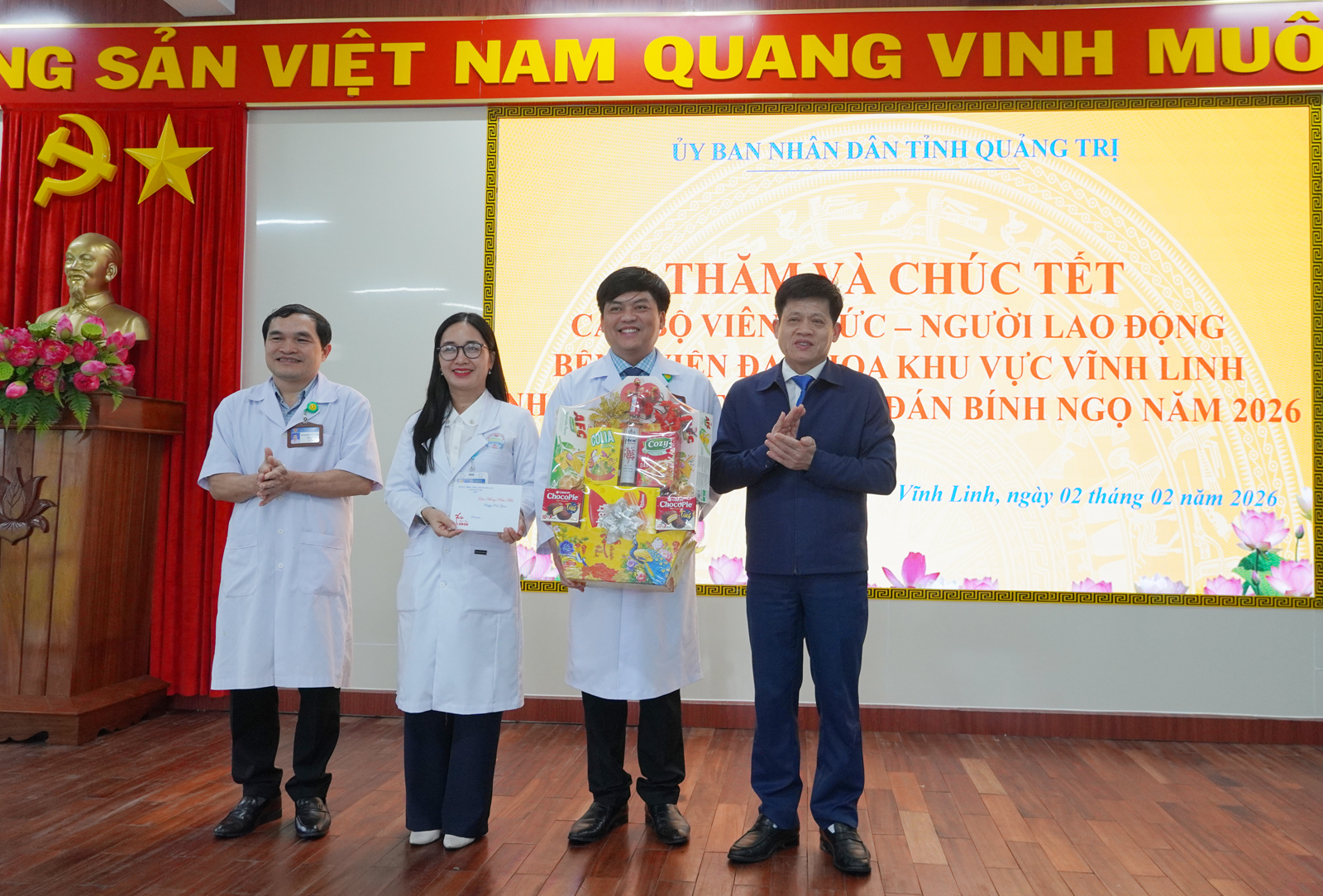 Tiếp đó, Phó Chủ tịch UBND tỉnh Lê Văn Bảo cùng đoàn đã đến thăm Bệnh viện Đa khoa khu vực Vĩnh Linh và Bệnh viện Đa khoa khu vực Lệ Thủy. Tại những nơi đến thăm, đồng chí ghi nhận, biểu dương những nỗ lực của đội ngũ cán bộ, viên chức, người lao động thời gian qua và mong muốn các cơ sở y tế tiếp tục phát huy vai trò, trách nhiệm của người thầy thuốc, thực hiện tốt công tác bảo vệ sức khỏe cho Nhân dân; bố trí đầy đủ lực lượng y, bác sĩ, trang thiết bị cần thiết phục vụ công tác khám, chữa bệnh, chăm sóc cho người dân trước, trong và sau Tết.