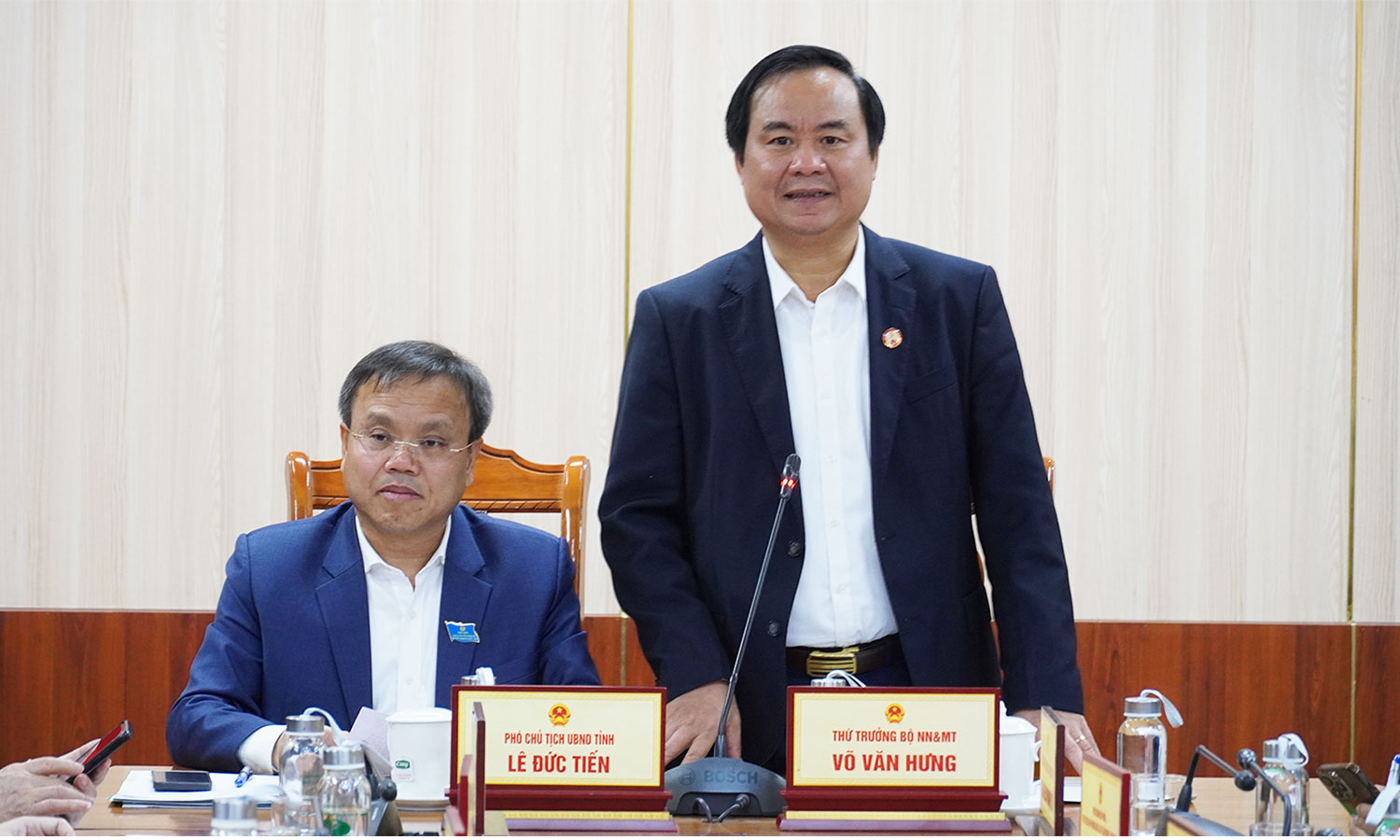 Phát biểu tại buổi làm việc, Thứ trưởng Bộ Nông nghiệp và Môi trường Võ Văn Hưng ghi nhận, biểu dương những nỗ lực cố gắng của tỉnh Quảng Trị trong sắp xếp, sớm ổn định bộ máy để khẩn trương tiếp tục thực hiện các nhiệm vụ không để bị gián đoạn trong chỉ đạo điều hành.