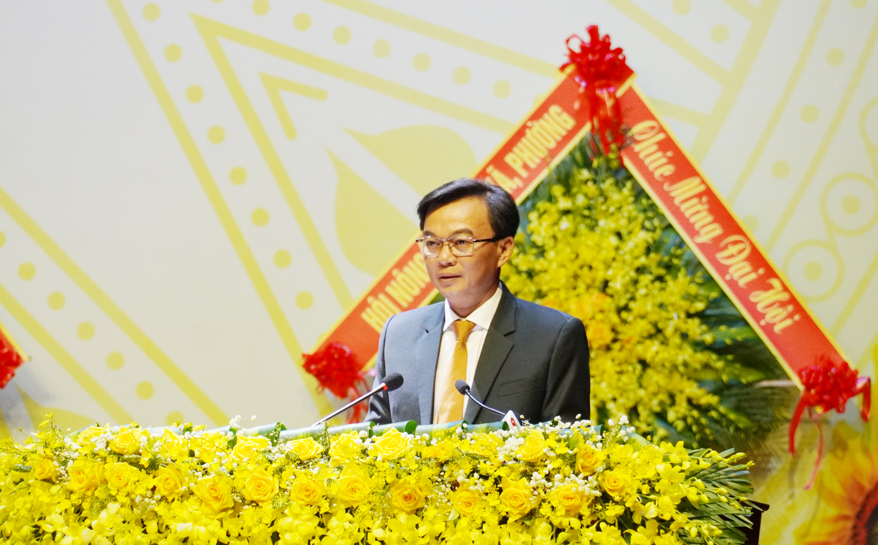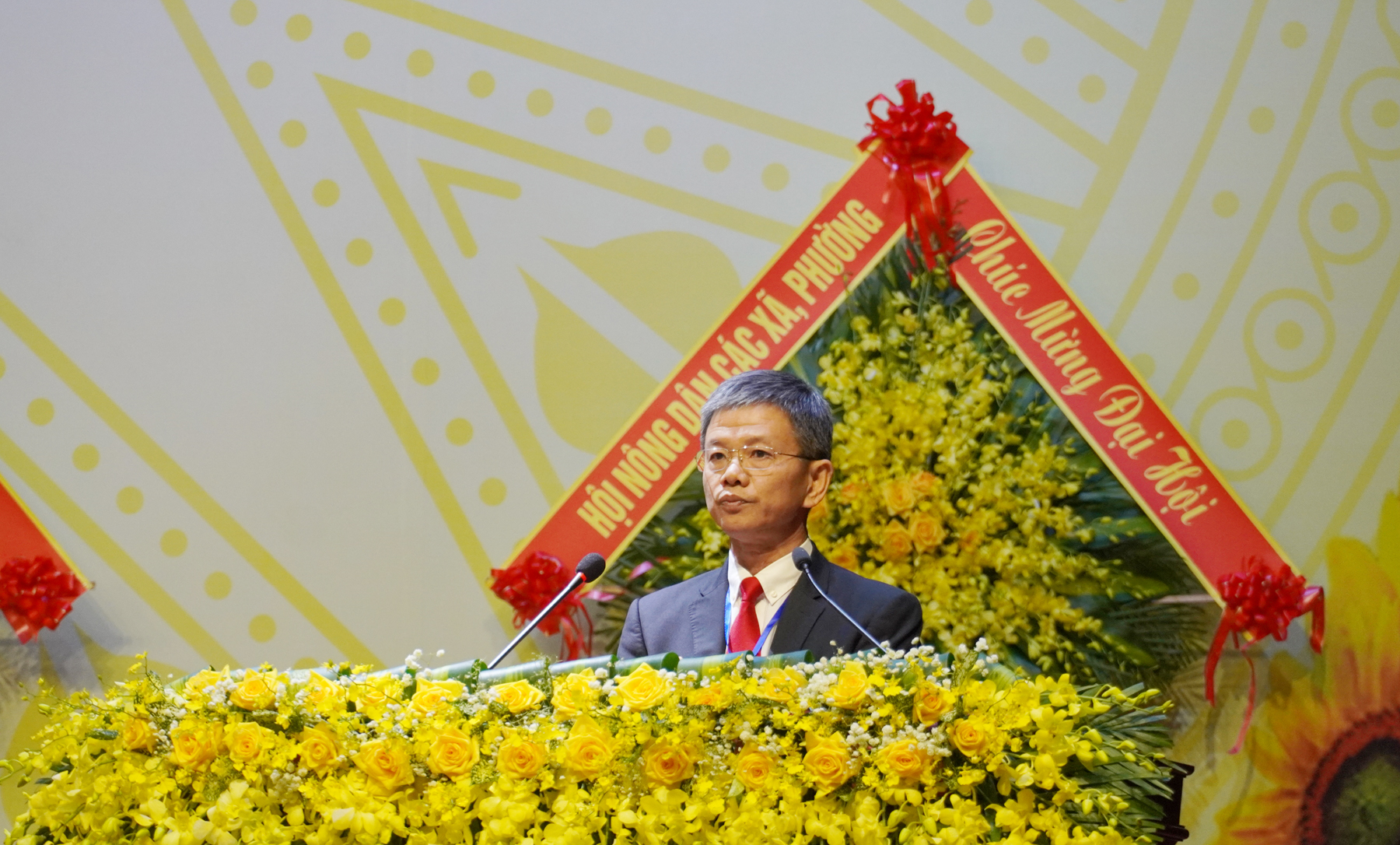 Phó Chủ tịch Trung ương Hội Nông dân Việt Nam Phạm Tiến Nam tặng hoa chúc mừng Đại hội