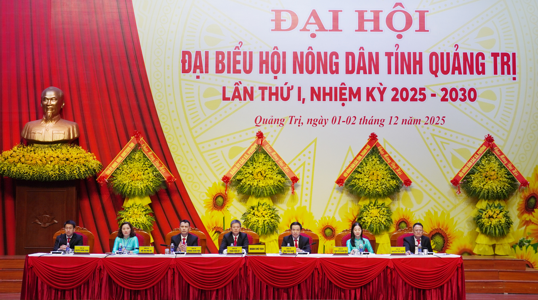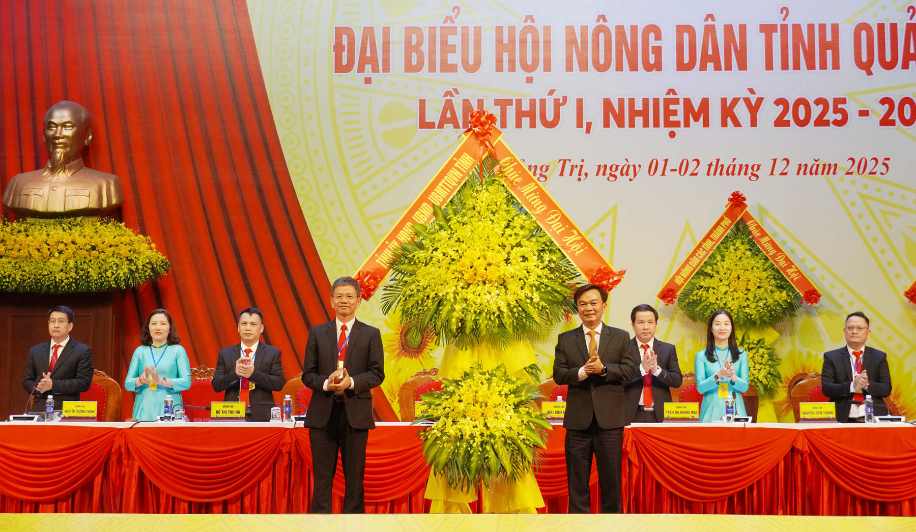 Các đồng chí lãnh đạo Trung ương và tỉnh tặng hoa Ban Chấp hành Hội Nông dân tỉnh Quảng Trị khóa I, nhiệm kỳ 2025 - 2030