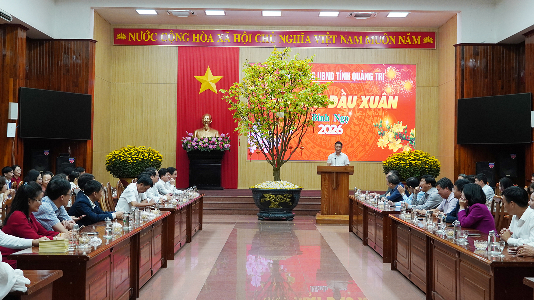 Trong không khí ấm áp đầu Xuân năm mới, Chủ tịch UBND tỉnh gửi lời chúc mừng năm mới tốt đẹp nhất đến cán bộ, công chức, viên chức, người lao động Văn phòng UBND tỉnh; mong muốn trong năm 2026, tập thể lãnh đạo Văn phòng UBND tỉnh, cán bộ, công chức, viên chức, người lao động cùng nỗ lực thực hiện các nhiệm vụ để góp phần hoàn thành nhiệm vụ phát triển kinh tế - xã hội của tỉnh đã đề ra.